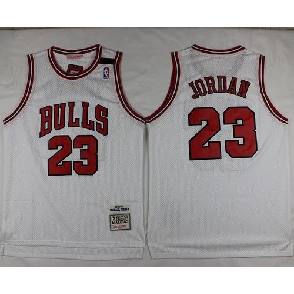 Mitchell and Ness Bulls #23 Michael Jordan Stitched White Throwback NBA Jersey