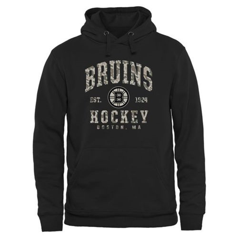 Men's Boston Bruins Black Camo Stack Pullover Hoodie