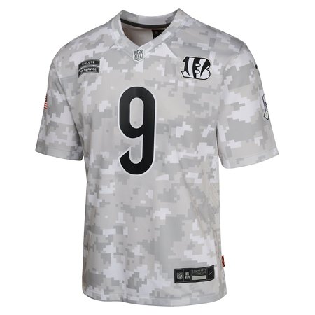Youth Cincinnati Bengals Joe Burrow Nike Arctic Camo 2024 Salute to Service Game Jersey